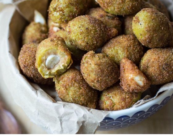 Siempre podemos darnos un gusto y salirnos de la dieta con este cheap meal de aceitunas empanizadas.